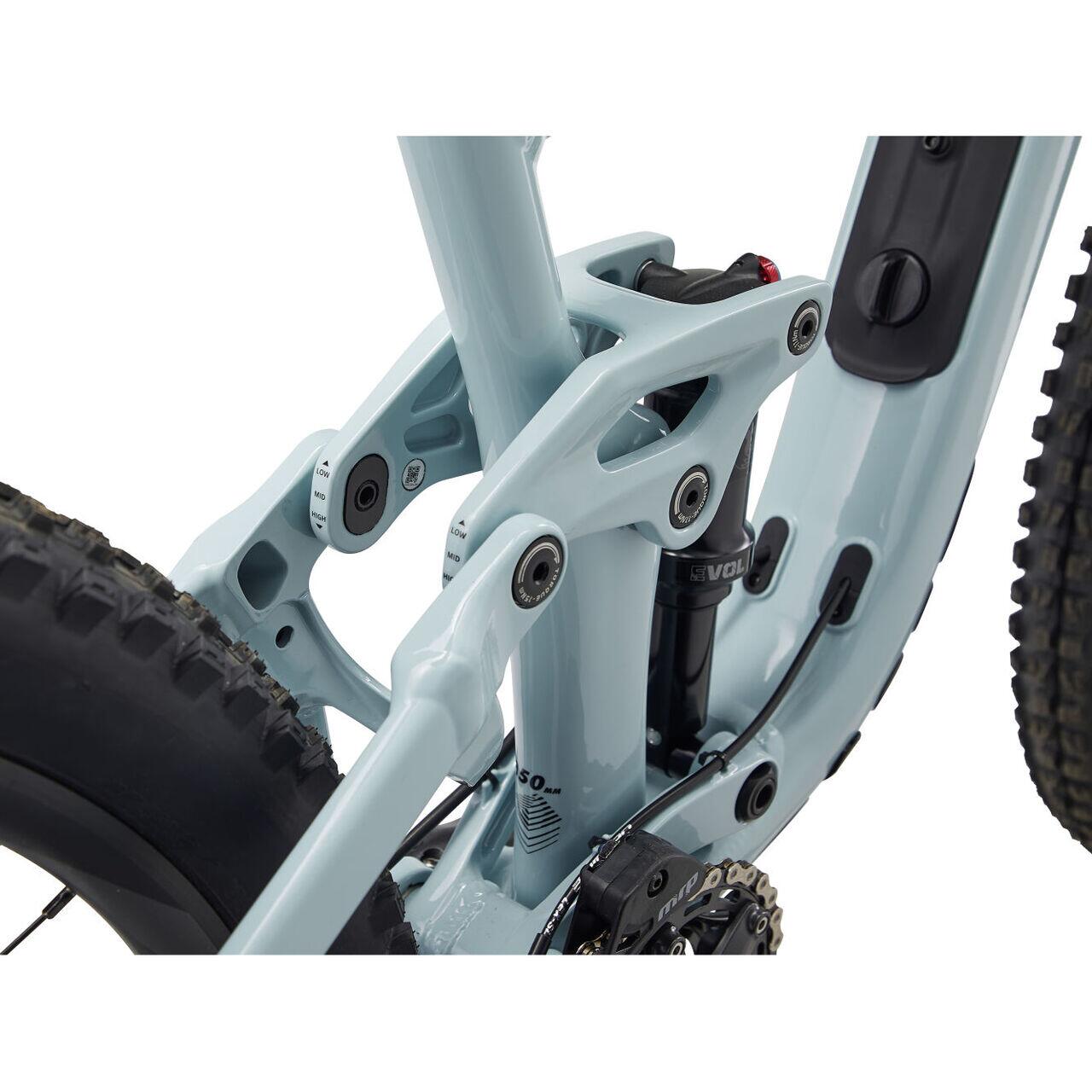 Cadrul ușor ALUXX SL-Grade din aluminiu, cu depozitare integrată pe down tube, prezintă un unghi mai lent al tubului de direcție pentru încredere sporită pe teren tehnic și o rază mai lungă de acțiune care te menține centrat și te ajută să păstrezi controlul în curbe. Suspensia roții din spate Maestro de 150 mm a fost reglată personalizat de femeile care știu să se dea pe trasee tehnice, pentru femei care știu să se dea pe trasee tehnice. Și împreună cu suspensia față de 160 mm, ai o bicicletă care este în egală măsură agilă și robustă.