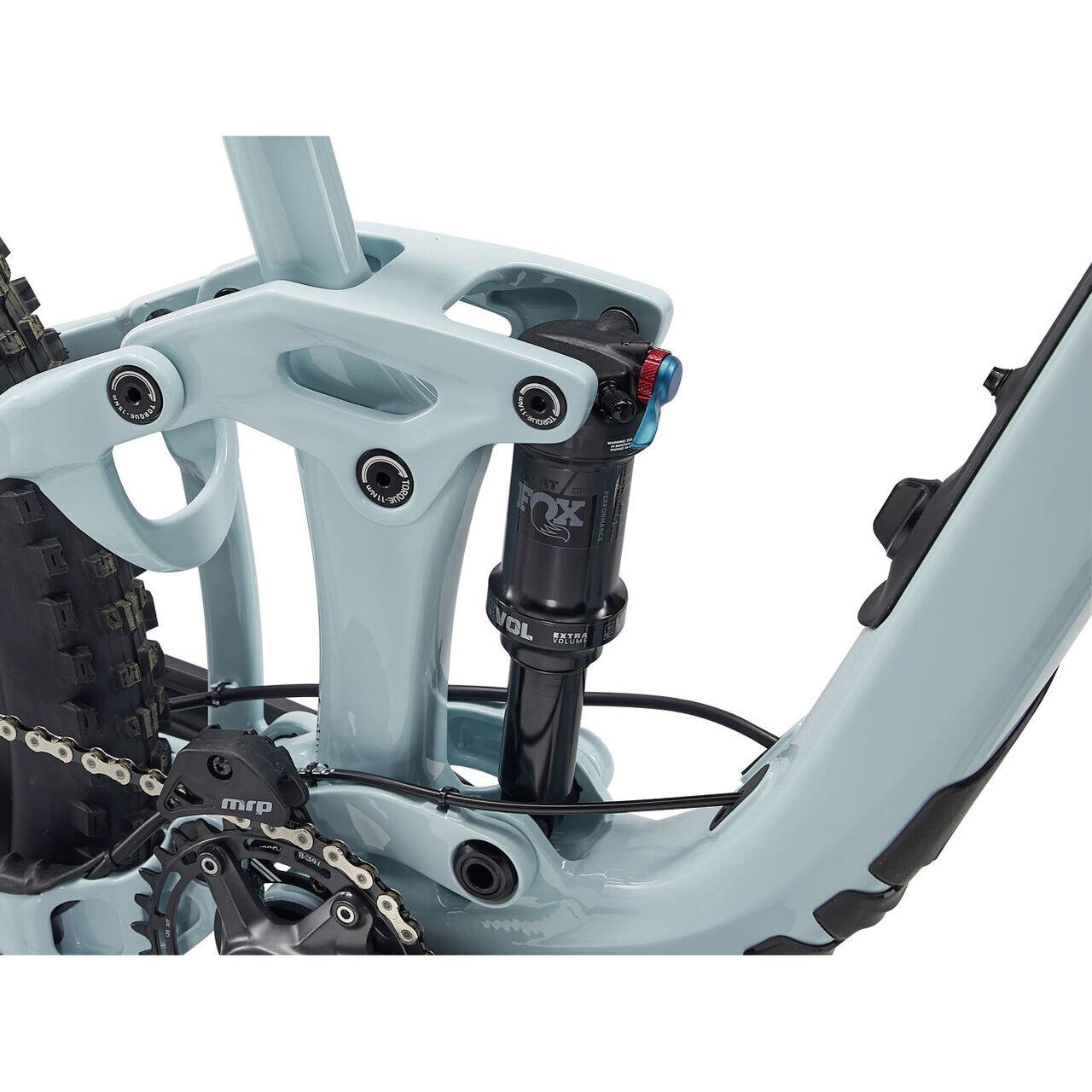 O suspensie cu design Single-Pivot, ce flexeaza de la imbinarea Chainstay-ului cu Seatstay-ul, oferind o cursa spate de pana la 120mm/4.7''