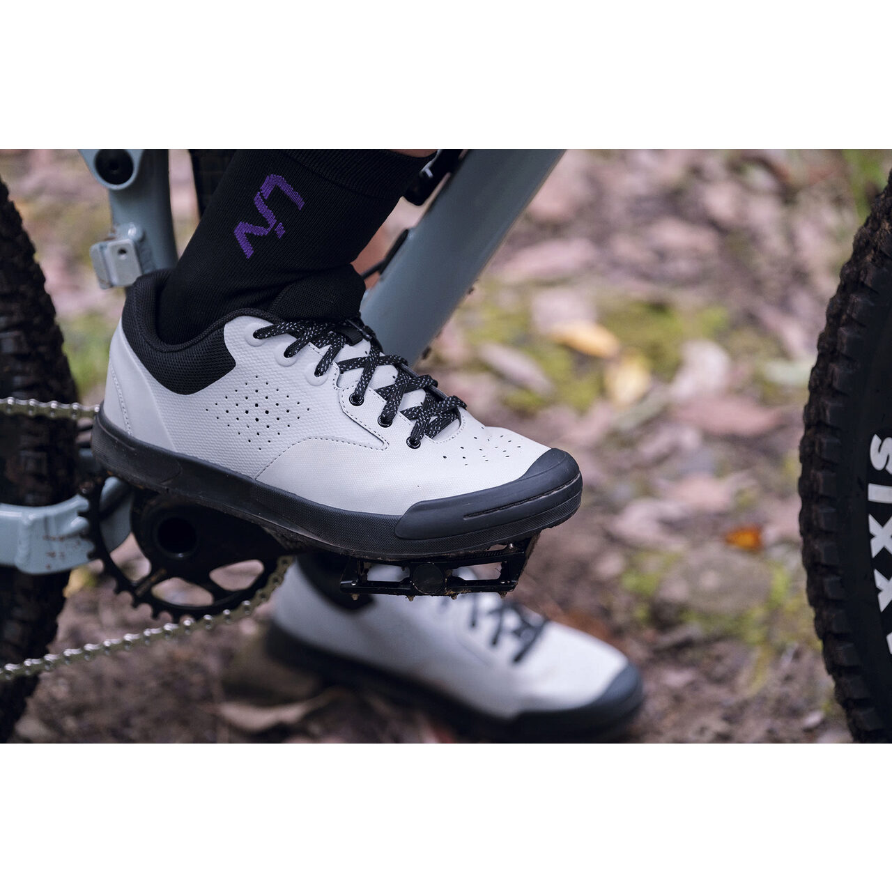 Cauciuc cu densitate dublă GRIPR® în zona de contact cu pedala, foarte rezistent la abraziune și fiabil pentru contactul cu pedala și mersul pe teren tehnic.