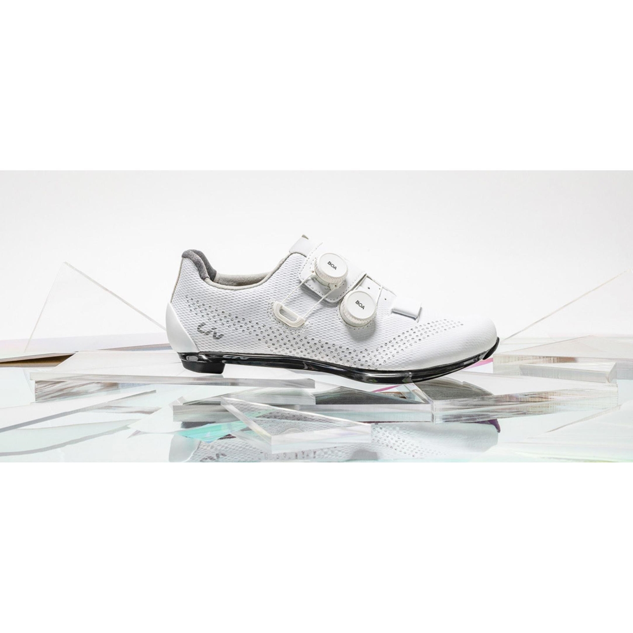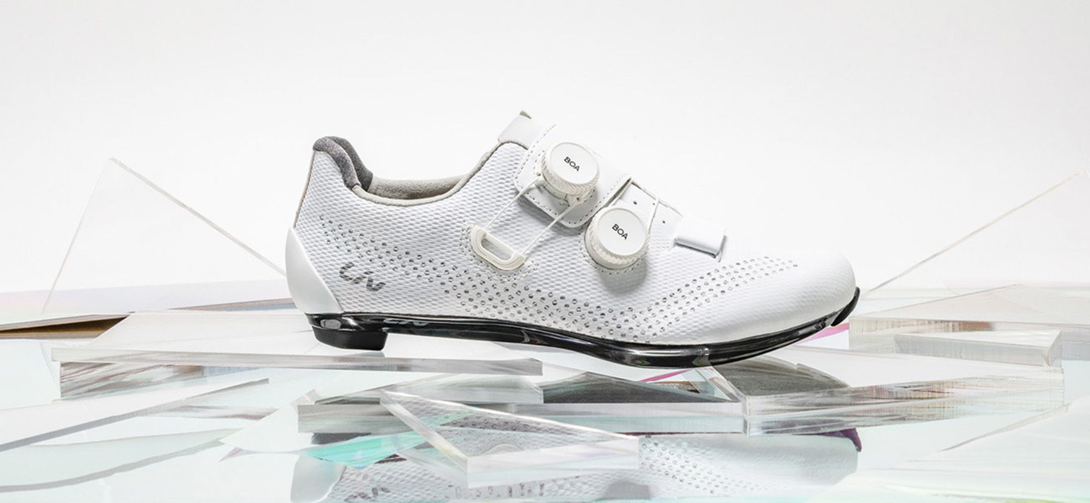 O nouă parte superioară din plasă acoperită cu poliuretan, cu microperforări tăiate cu laser, oferă o ventilație maximă combinată cu durabilitate de lungă durată. Cusăturile sunt mai degrabă sudate decât cusute, ceea ce ajută la minimizarea greutății și conferă acestor pantofi de drum un profil elegant, cu o senzație de suplețe.