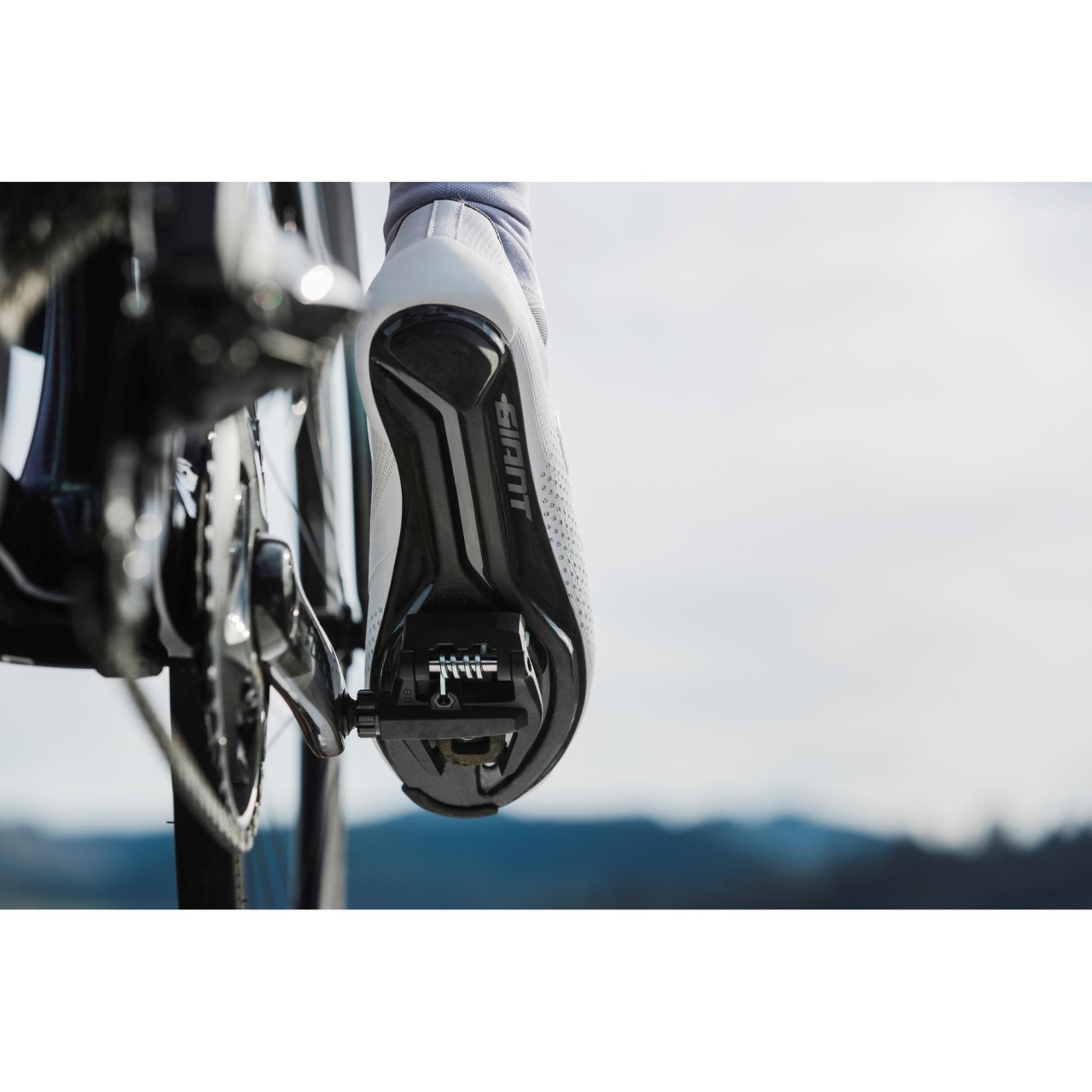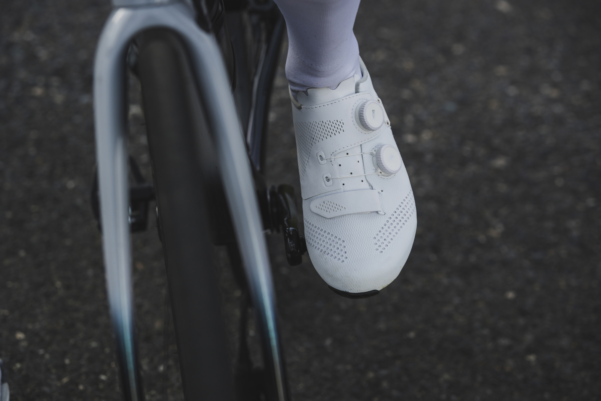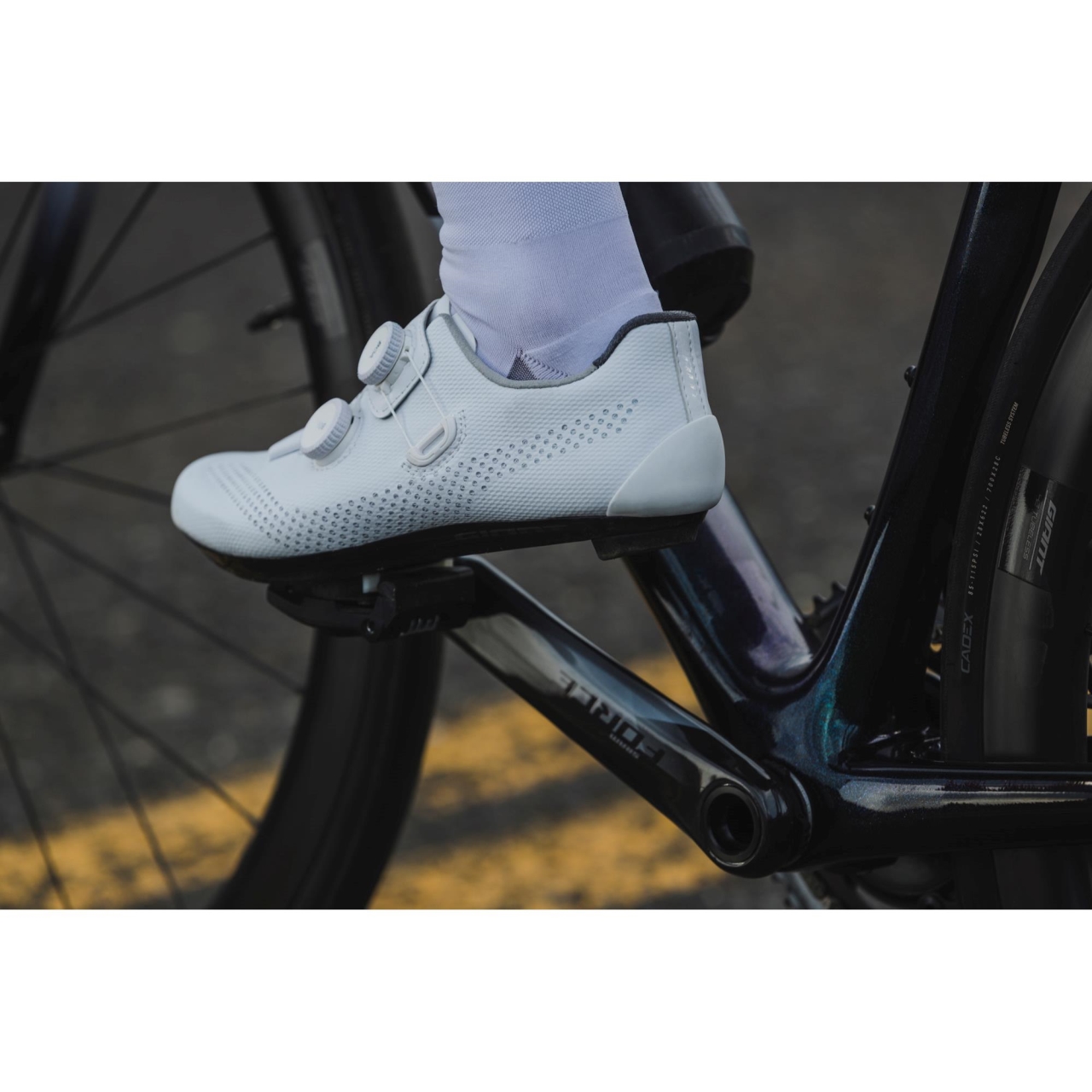 O nouă parte superioară din plasă acoperită cu poliuretan, cu microperforări tăiate cu laser, oferă o ventilație maximă combinată cu durabilitate de lungă durată. Cusăturile sunt mai degrabă sudate decât cusute, ceea ce ajută la minimizarea greutății și conferă acestor pantofi de drum un profil elegant, cu o senzație de suplețe.