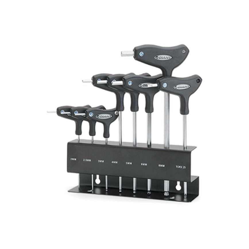 Set GIANT 8 Chei Hex este un set pentru ateliere sau reparații acasă, format din 8 chei hex allen, inclusiv un suport pentru bancă de lucru.